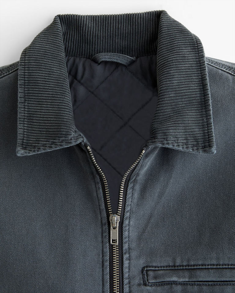 Chaqueta de Mezclilla Personalizada con Cierre, Color Sólido, Algodón Recubierto, Lavada, Transpirable, Ecológica, con Bolsillo Frontal, Estilo Urbano para Hombre