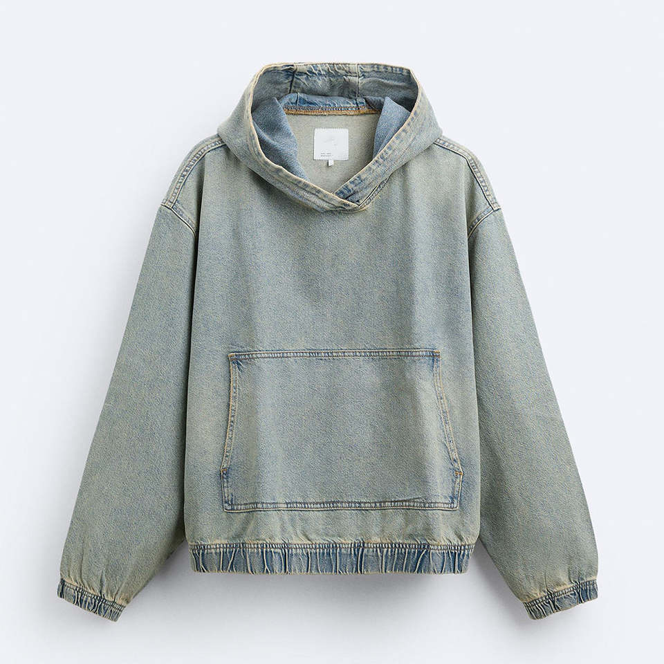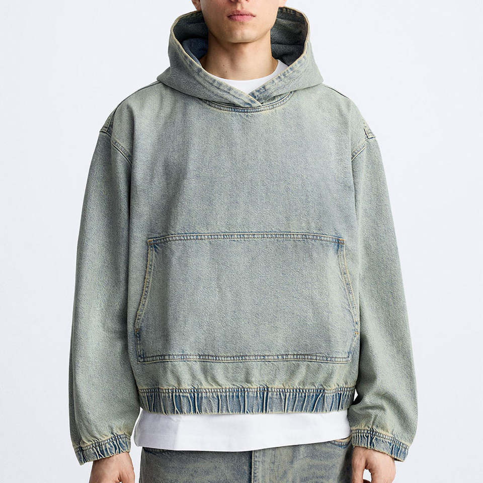 Sudaderas con capucha de mezclilla de diseño personalizado Y2K Streetwear Boxy Fit Oversized Pullover Sudadera con capucha recortada de peso pesado