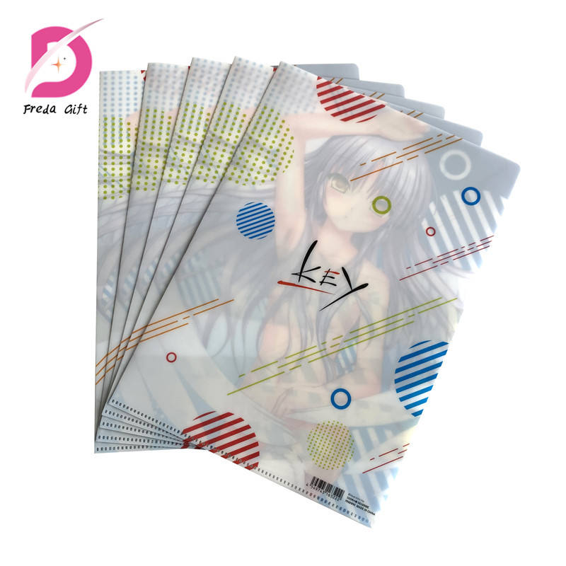 Diseño personalizado de los diferentes tipos de plástico transparente pp en forma de L A4 de plástico de tamaño carpetas de archivo