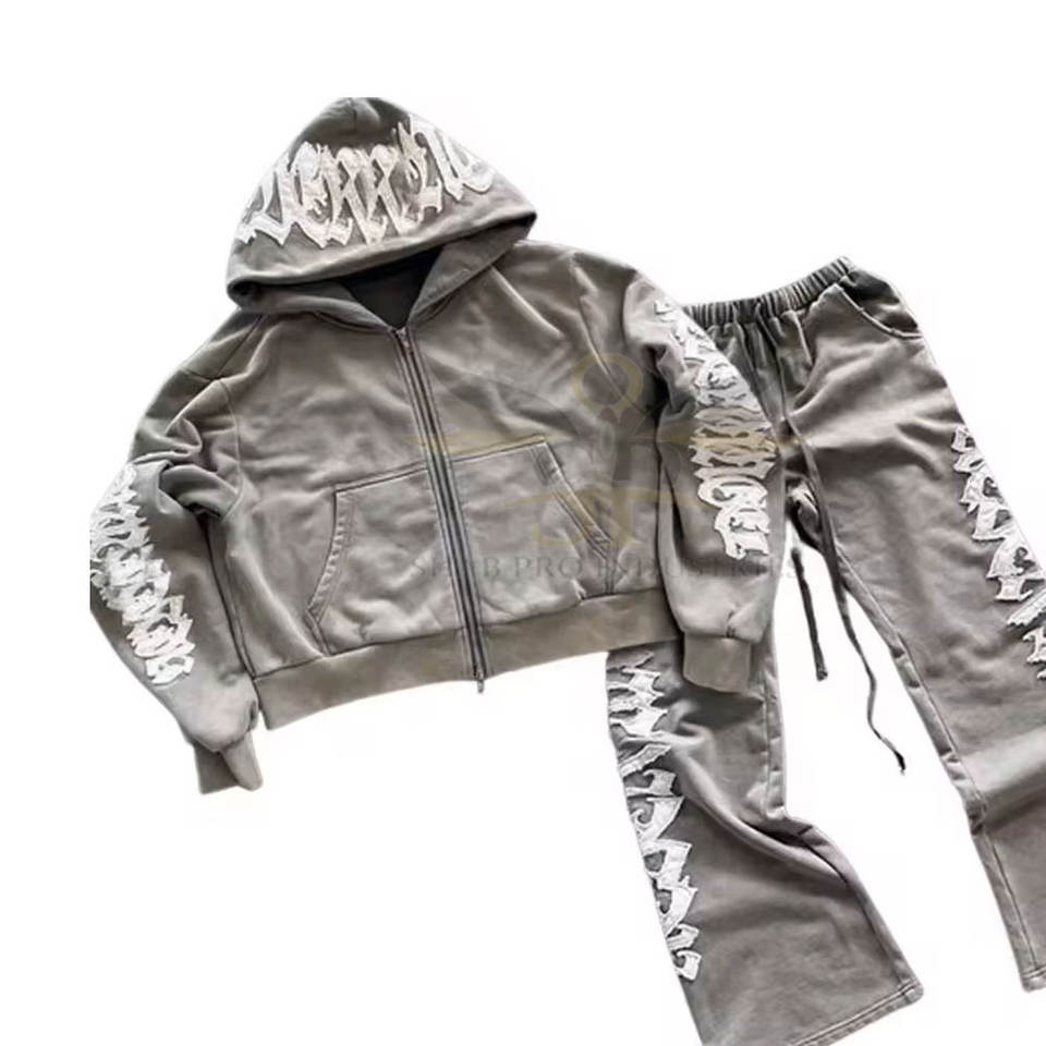 Chándales bordados de angustia de diseño personalizado en diferentes colores Chándales bordados de angustia de gran tamaño