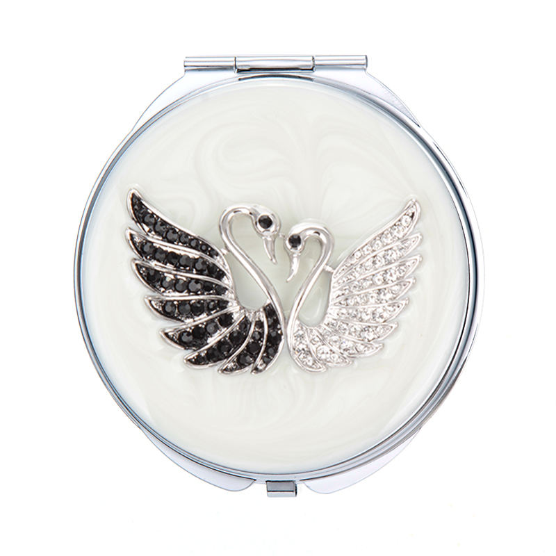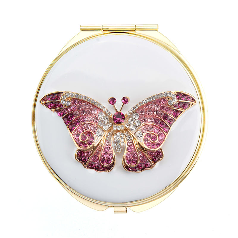 Diseño personalizado de doble cara plegable vintage metal lápiz labial forma esmalte de lujo sexy chica regalo promocional joya espejo de bolsillo