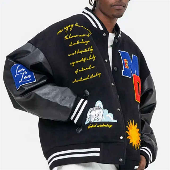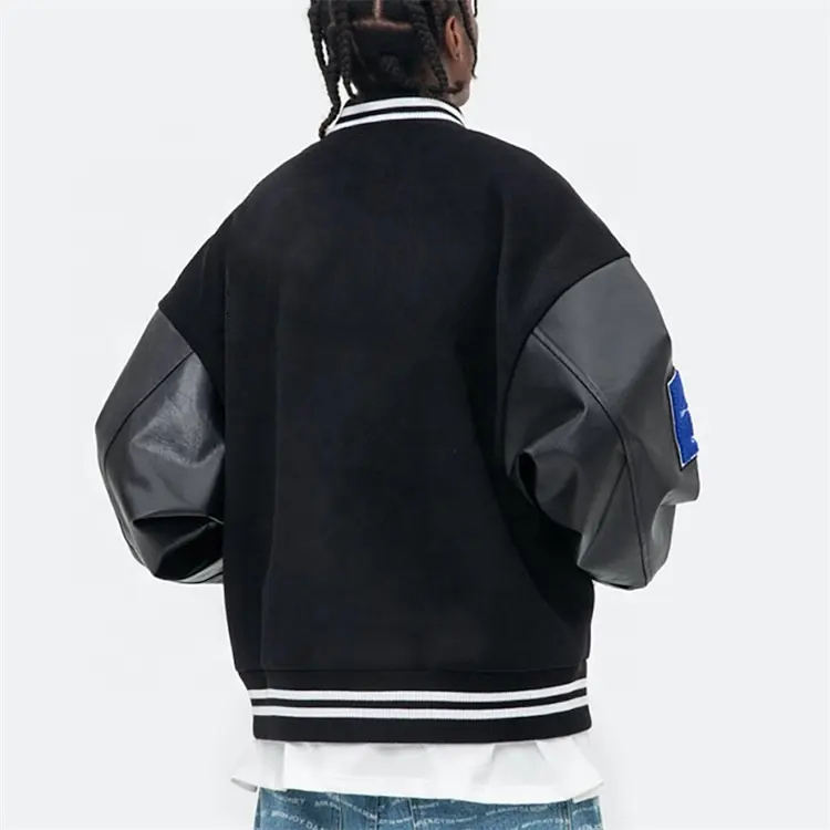 Chaqueta Bomber Varsity de Pana Transpirable de Invierno, Diseño Personalizado, Ecológica, Tallas Grandes, con Detalles de Piel de Oveja/Vaca, para Hombre Universitario