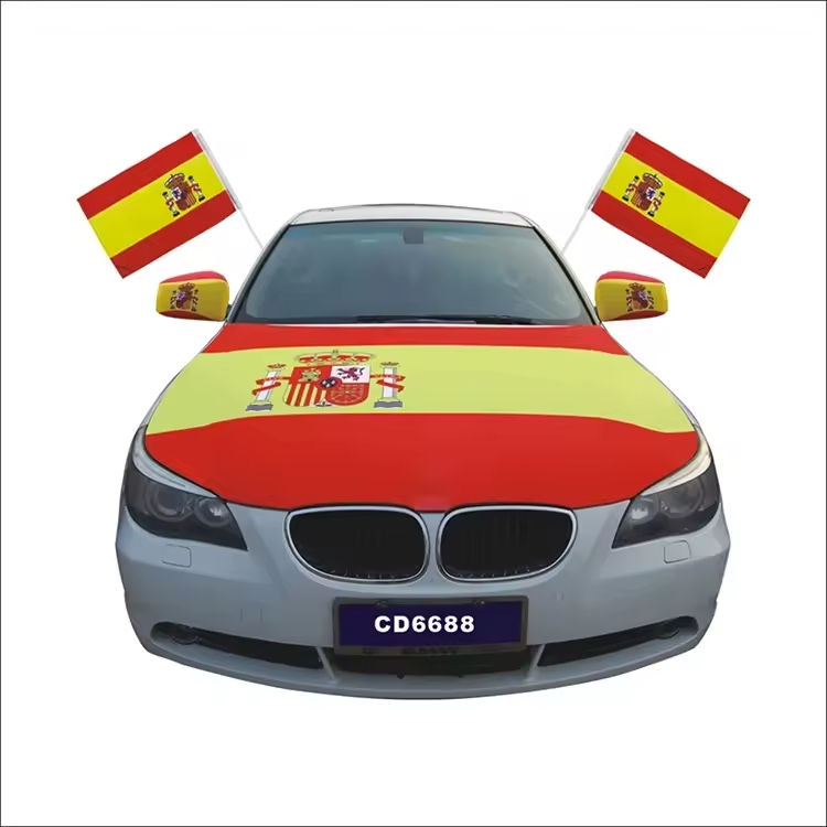 Bandera elástica de diseño personalizado, cubierta tejida de poliéster para espejo retrovisor de coche, Bandera de coche con soporte, juego de cubierta de capó de coche