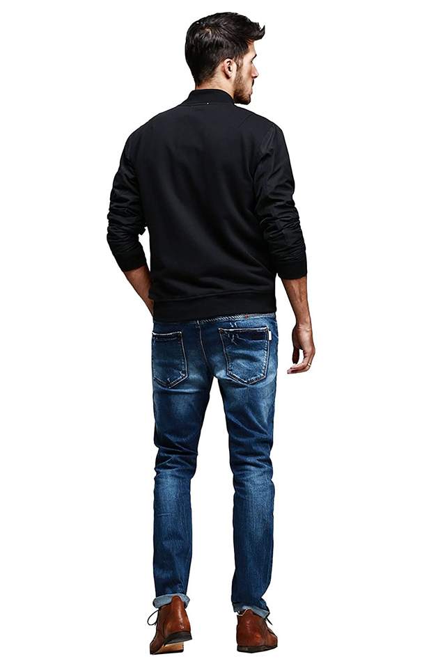 Chaqueta de Trabajo de Mezclilla Lavada Vintage, Estilo Bomber, con Cierre Completo, Dobladillo sin Rematar, Diseño Personalizado con Bordado Gráfico, para Hombre