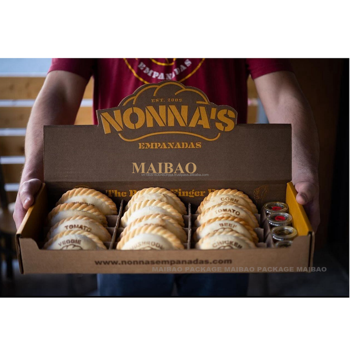 Diseño personalizado Empanada caja de embalaje para comida para llevar corrugado Kraft plegable Mailer cajas para empacar carne relleno Empanadas Dumpling
