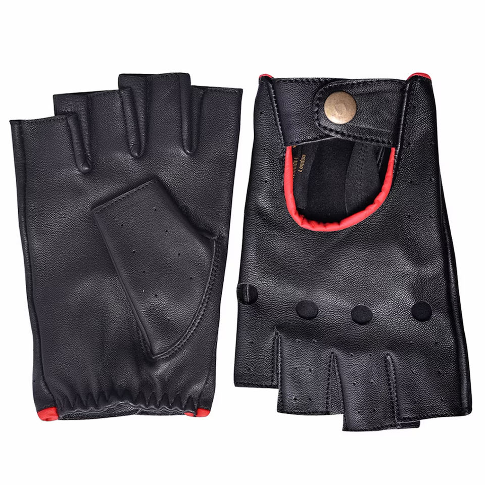 Guantes de Conducción de Medio Dedo Personalizados de GLOVES City Fashion, Guantes de Cuero Negros y Rojos para Conducir al Aire Libre, de Pakistán 2026