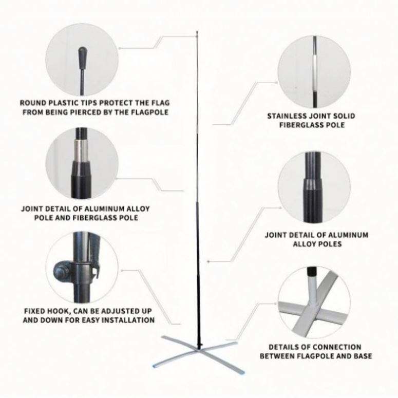 Fibra de vidrio, hierro cromado resistente a la oxidaciónMaterial de la asta de bandera