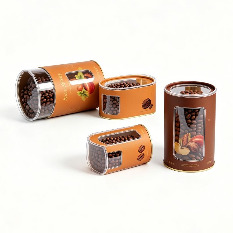 Tubo de Papel Kraft Biodegradable de Grado Alimenticio con Diseño Personalizado, Cilindro de Cartón Redondo con Ventana Transparente de PVC para Envasado de Café y Té