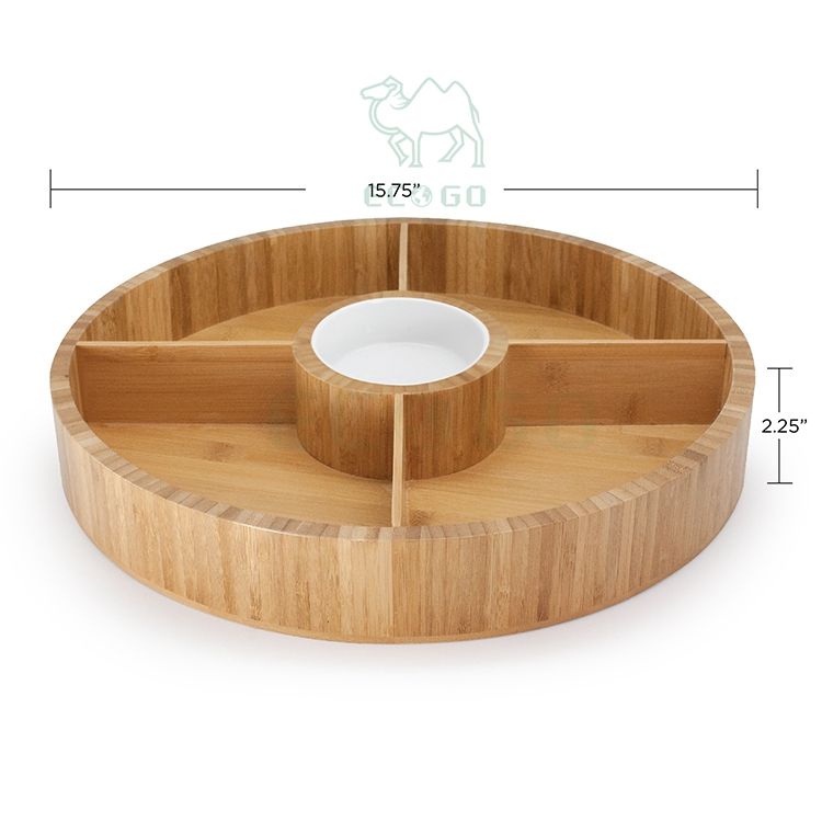 Bandeja de servicio de comida de diseño personalizado Juego de platos de cerámica de 5 departamentos Bandeja de servicio de madera a prueba de humedad