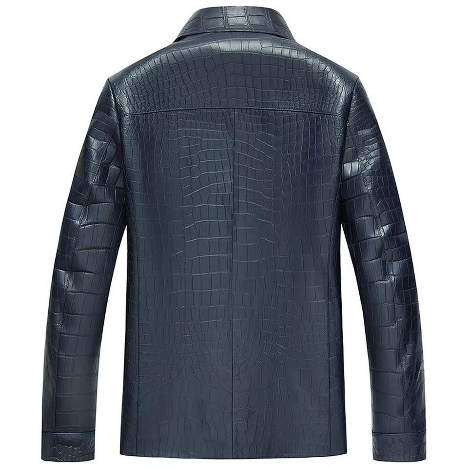 Camisa de Cuero Genuino de Cocodrilo y Piel de Vaca con Diseño Personalizado, Chaqueta de Cuero Repujada Hecha a Mano para Hombre, Estilo Camisa de Cuero con Cremallera para Invierno