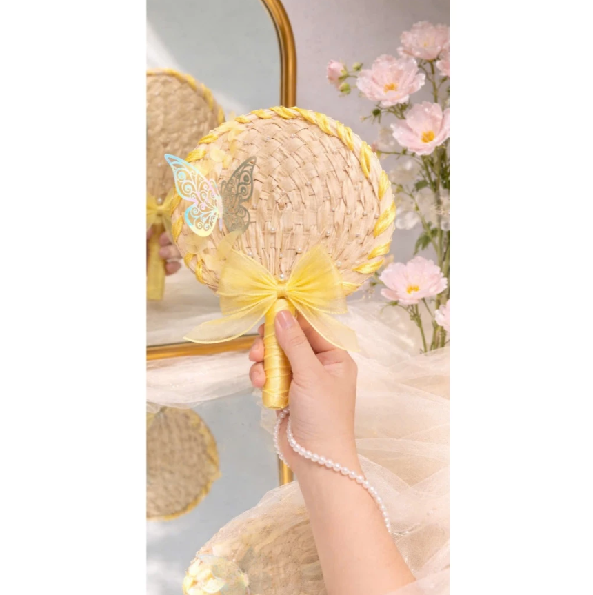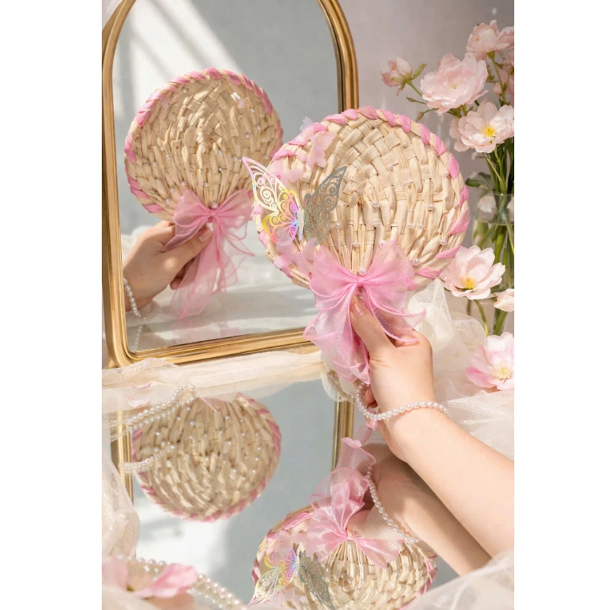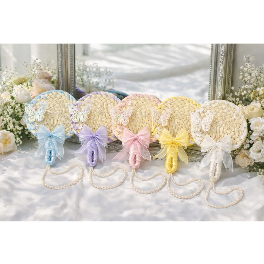Abanico de Bambú Personalizado con Logotipo Impreso, Abanico de Hoja de Palma para Bodas con Decoración de Lazo Colorido