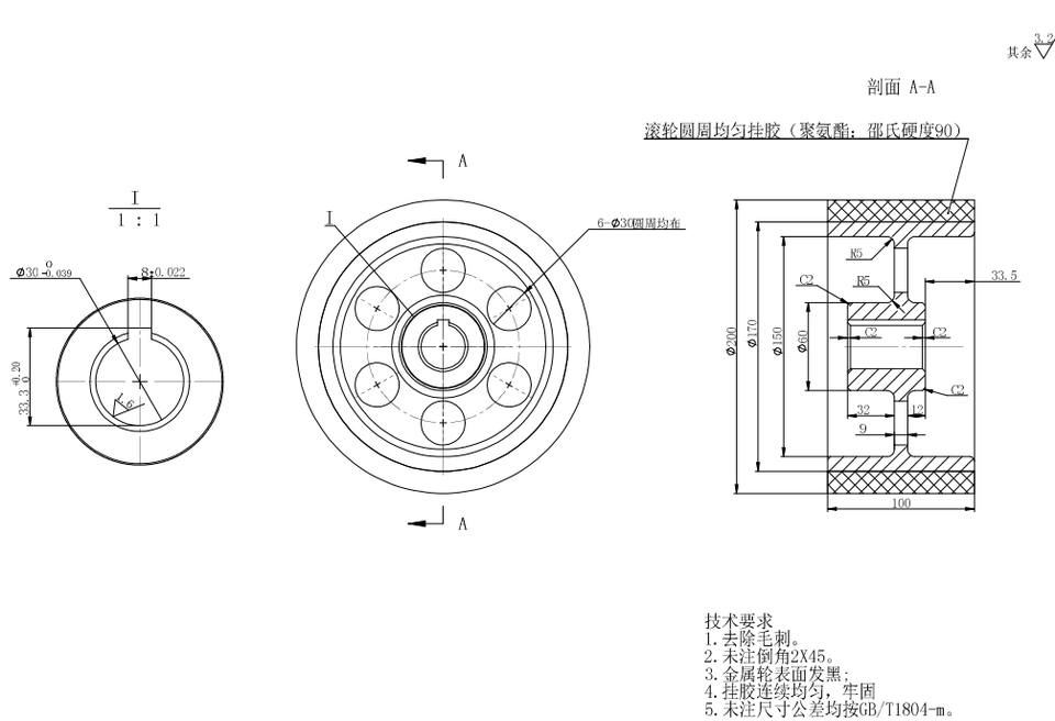 Material DE LA RUEDA:Hierro fundido de la banda de rodadura del poliuretano