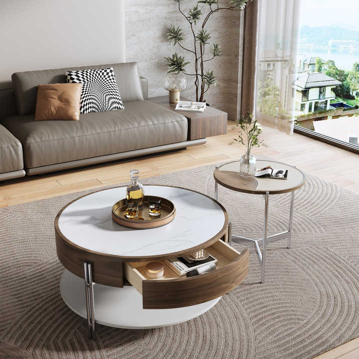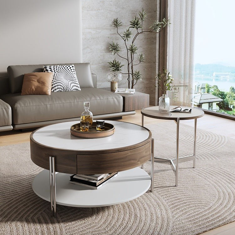 Diseño personalizado casa mesa de centro de madera blanco y negro moderno de lujo mesa de café conjunto de sala de estar