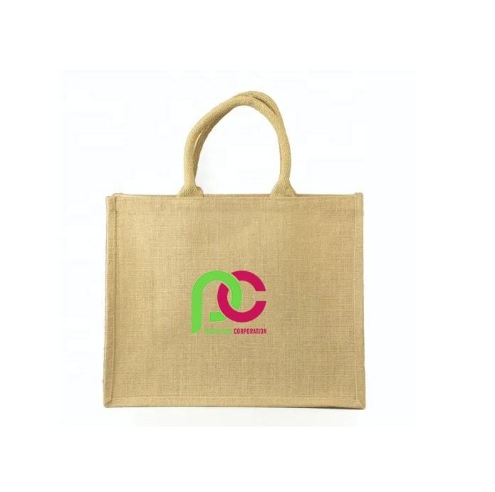 Bolso de playa de arpillera de yute de diseño personalizado con asas de algodón suave perfectamente cosido y ecológico para viajar