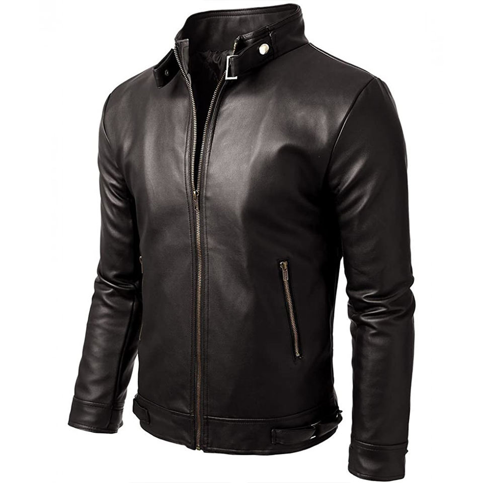 Chaqueta de Cuero de Diseño Personalizado, Chaqueta de Cuero de Color Sólido para Hombre, Chaqueta de Cuero Urbana para Hombre, Chaqueta de Cuero para Hombre en Venta en Línea