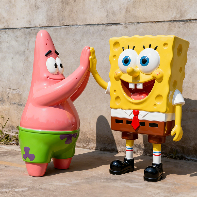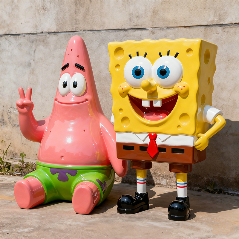 Escultura de Resina de Tamaño Real con Diseño Personalizado, Personaje de Dibujos Animados de Bob Esponja, Pintura de Animales de Fibra de Vidrio Duradera