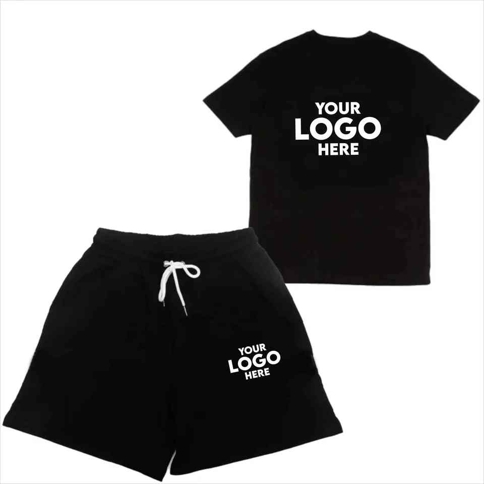 Conjunto de dos piezas de ropa urbana con diseño de logotipo personalizado, camiseta y pantalones cortos para hombre, moda urbana OEM, conjunto coordinado de verano.