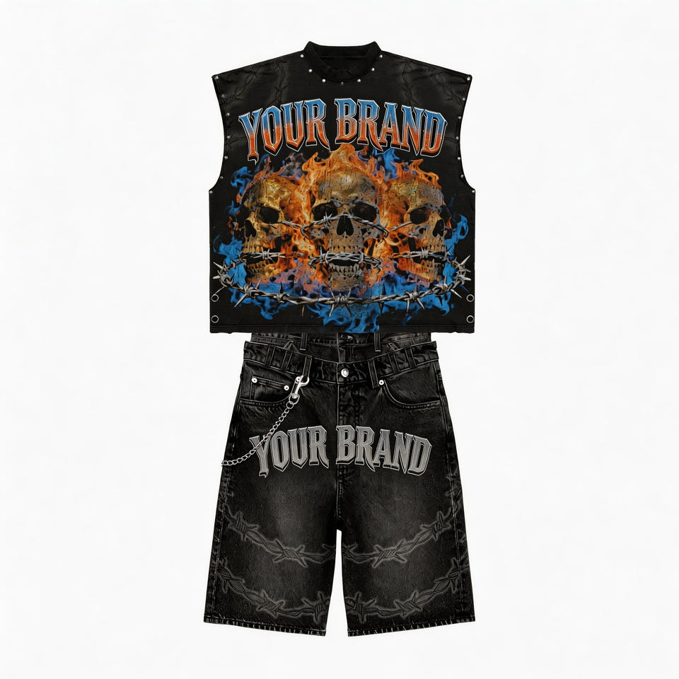 Conjunto de Dos Piezas de Ropa Urbana con Logotipo de Diseño Personalizado, Camiseta y Pantalones Cortos para Hombre, Moda Urbana de Verano, Conjunto de Camiseta para Hombre