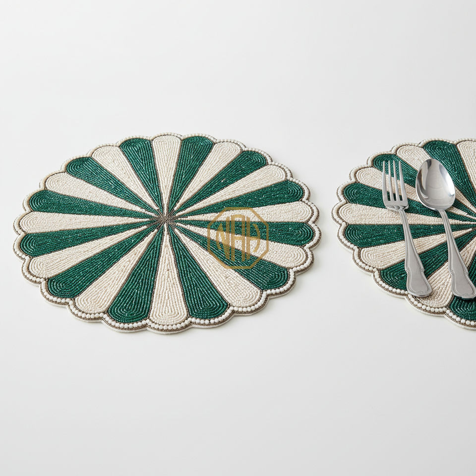 Manteles Individuales Redondos de Satén Bordados con Cuentas, Diseño Personalizado de Lujo, Hechos a Mano, Decoración de Mesa para Hoteles, Bodas y Eventos, Exportación