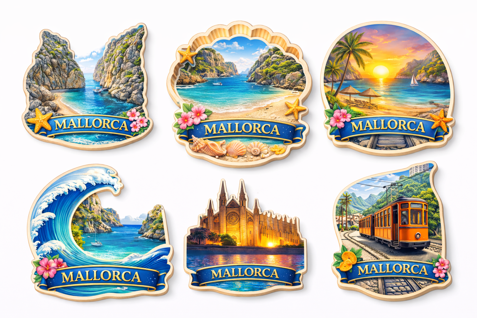 Imán de nevera 3D de madera MDF de 2 capas con diseño personalizado de recuerdos de MALLORCA