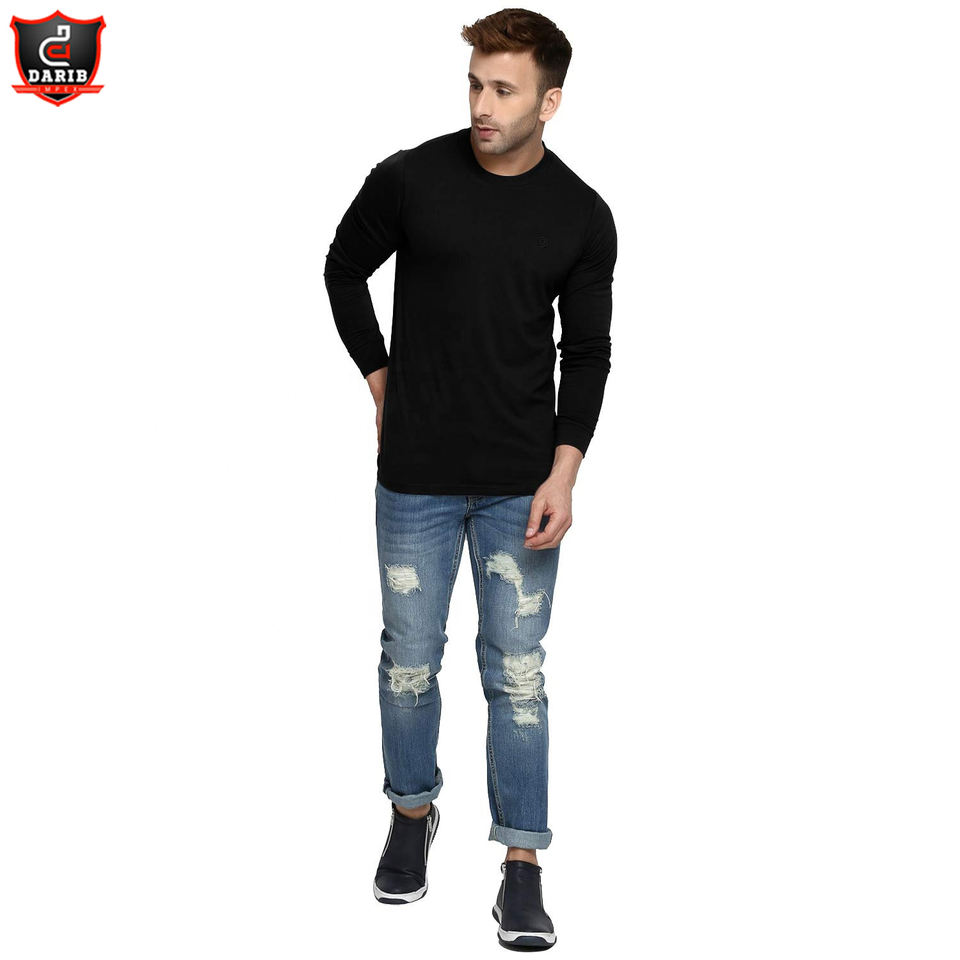 Camiseta de manga larga para hombre, camisa de diseño personalizado, 100% algodón, lisa, talla grande, 100%