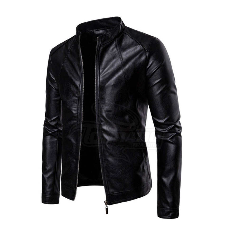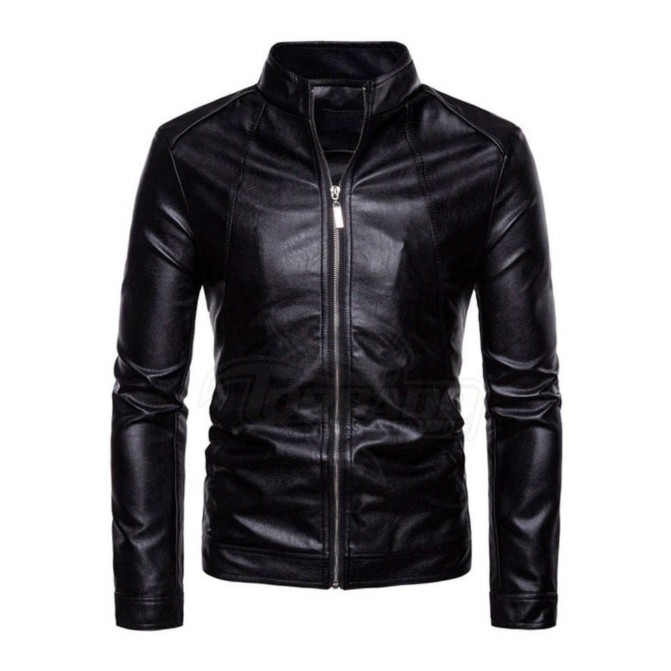 Chaqueta de Cuero para Hombre de Diseño Personalizado, Chaqueta de Cuero de Color Sólido para Hombre, Chaqueta de Cuero para Hombre de Estilo Urbano para la Temporada de Invierno