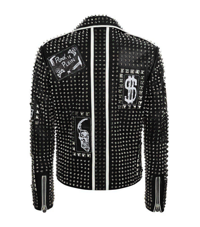 Chaqueta de cuero con tachuelas para hombre, chaqueta Punk, chaqueta de batalla para hombre, estilo de motocicleta, trabajo Premium hecho a mano