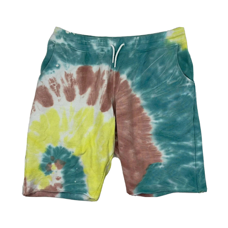 Pantalones cortos tie-dye de diseño personalizado para hombre, estilo urbano, tejidos, lisos, en diferentes colores, a la venta, con estampado sólido.