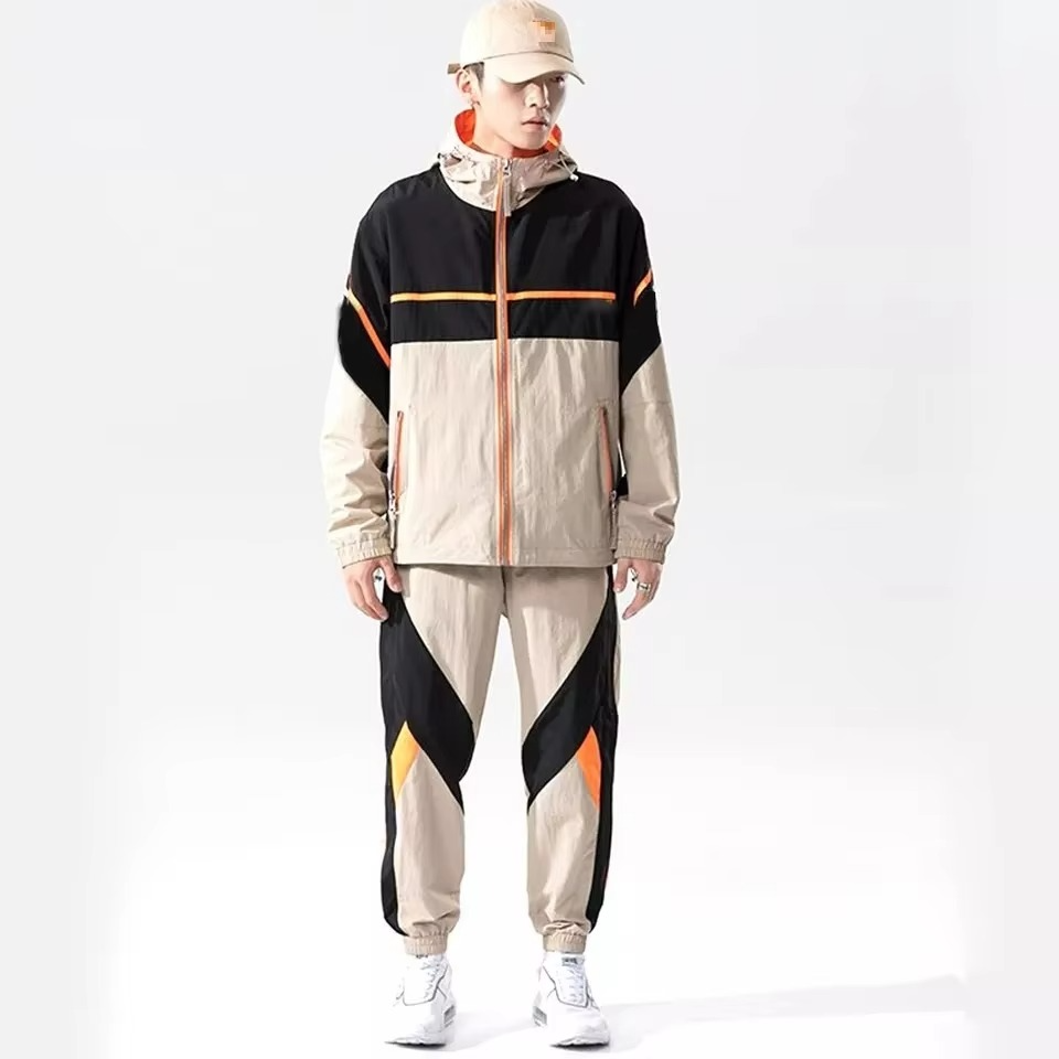 Chándal cortavientos de diseño personalizado para hombre, conjunto de nailon, traje, chaqueta deportiva, chándal cortavientos con cremallera para hombre