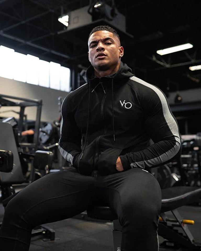 Ropa de entrenamiento de diseño personalizado para hombre, traje de pista con logotipo bordado, capucha con cordón ajustable para el cuerpo, para gimnasio, con capucha, color blanco, a rayas laterales