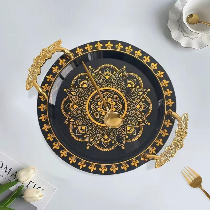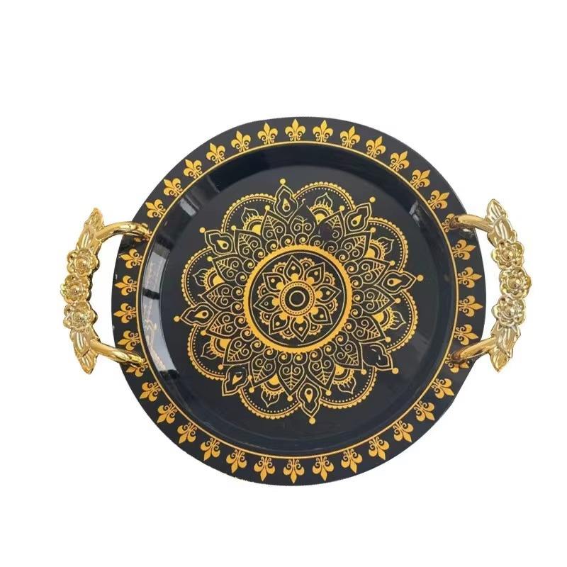 Platos de Metal de Diseño Personalizado con Asas de Diseño para Decoración de Mesas de Eventos de Lujo
