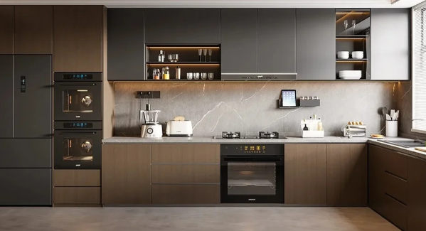 Armarios de cocina modulares de diseño personalizado, colección de armarios del fabricante