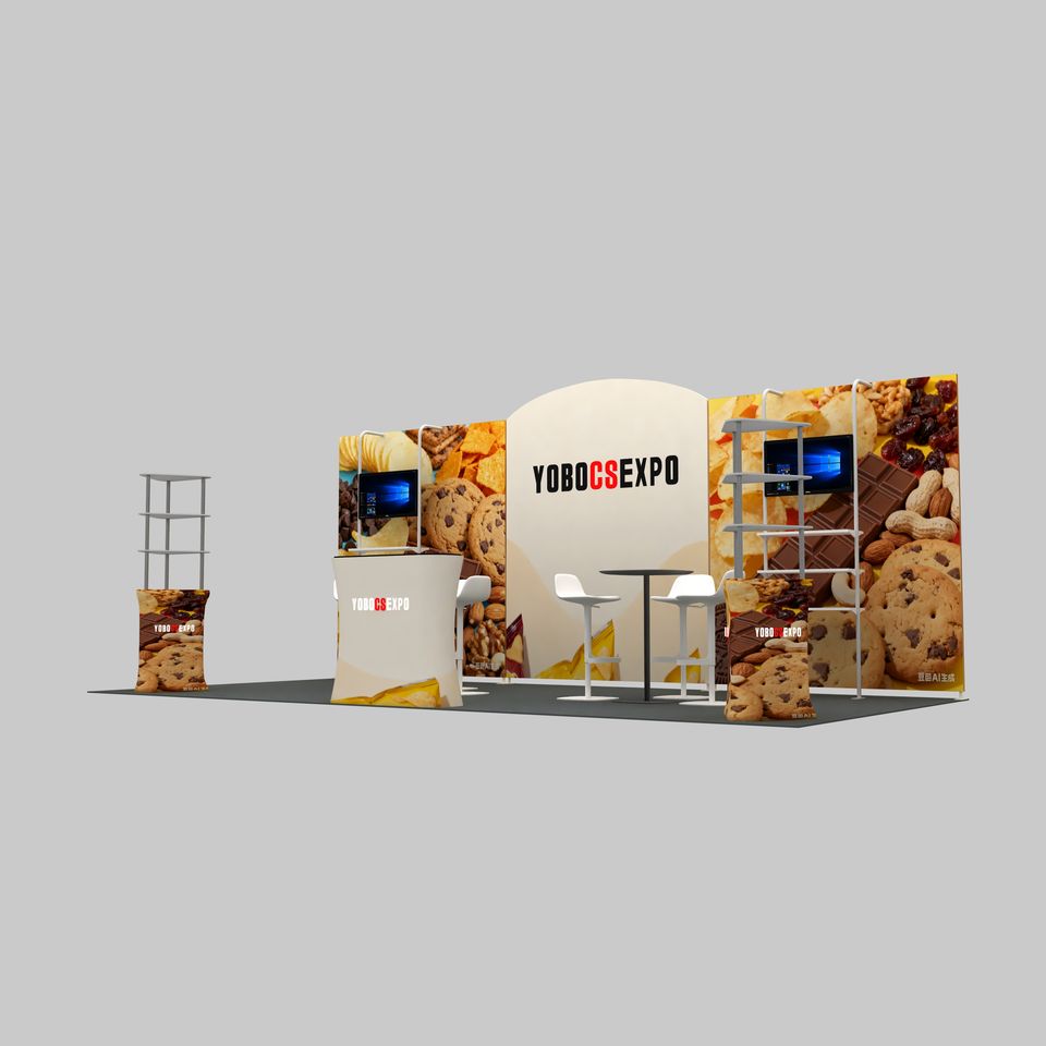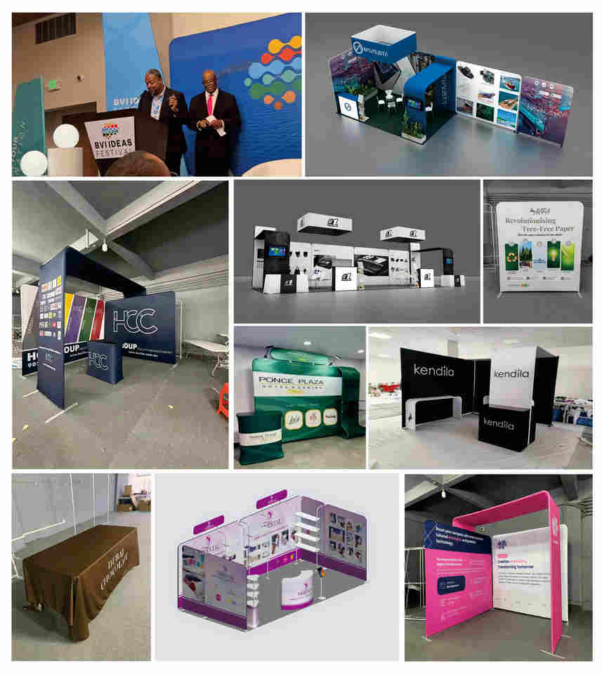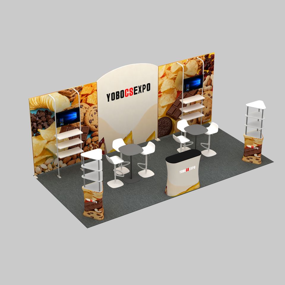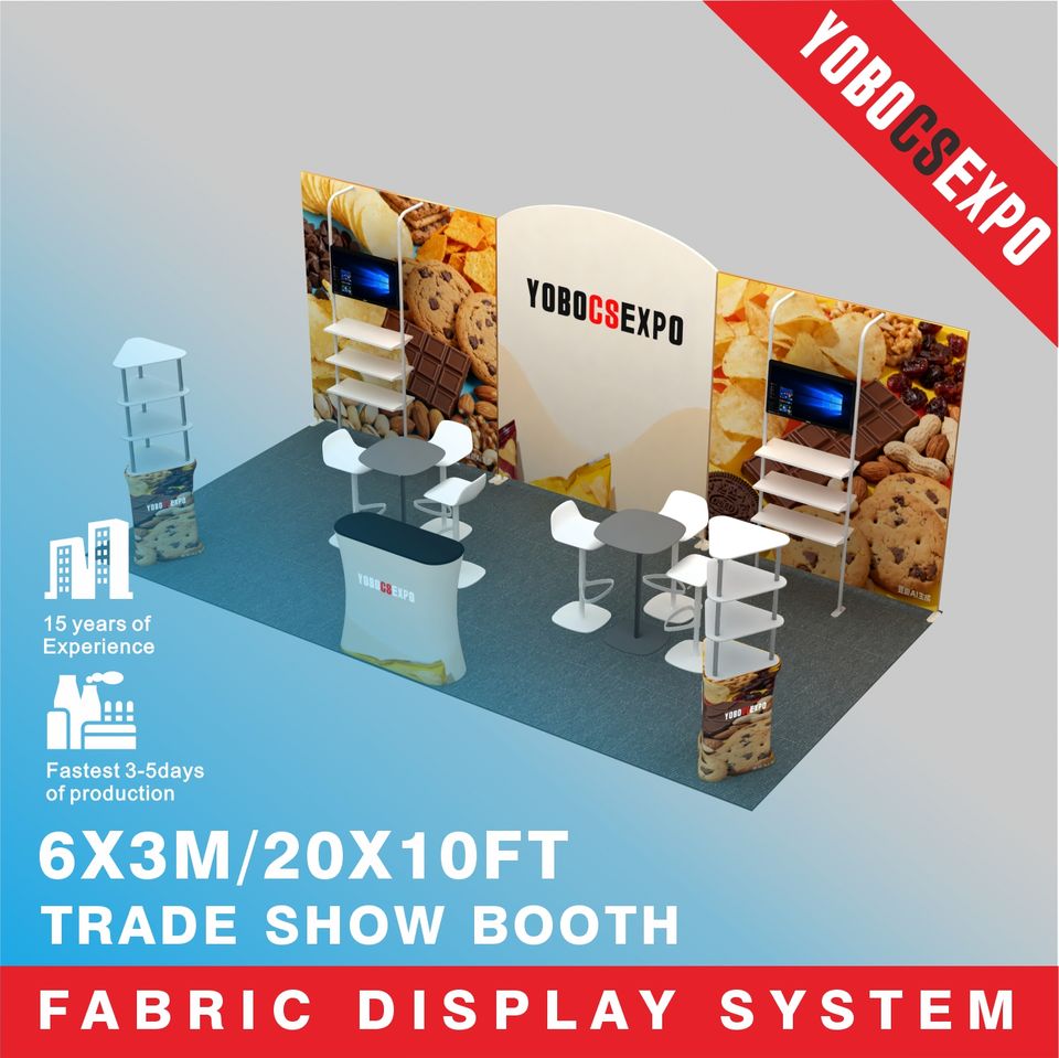 Stand de Exhibición Modular de Tela Tensada con Estructura de Aluminio para Ferias Comerciales, Diseño Personalizado, 10x10 10x20 pies, Portátil, Plegable, con Soportes para TV
