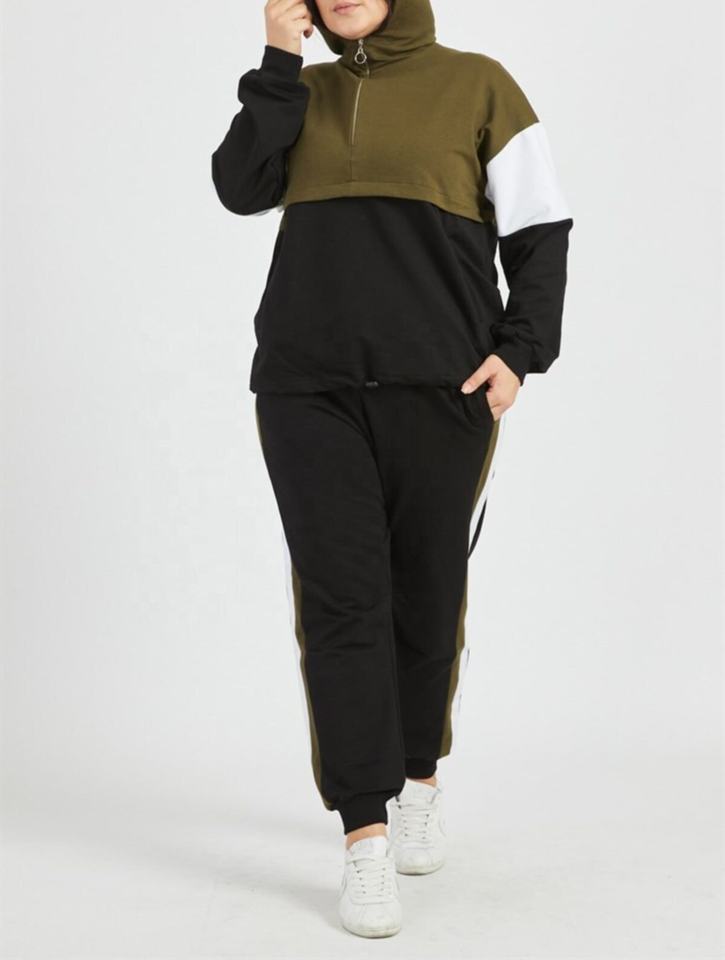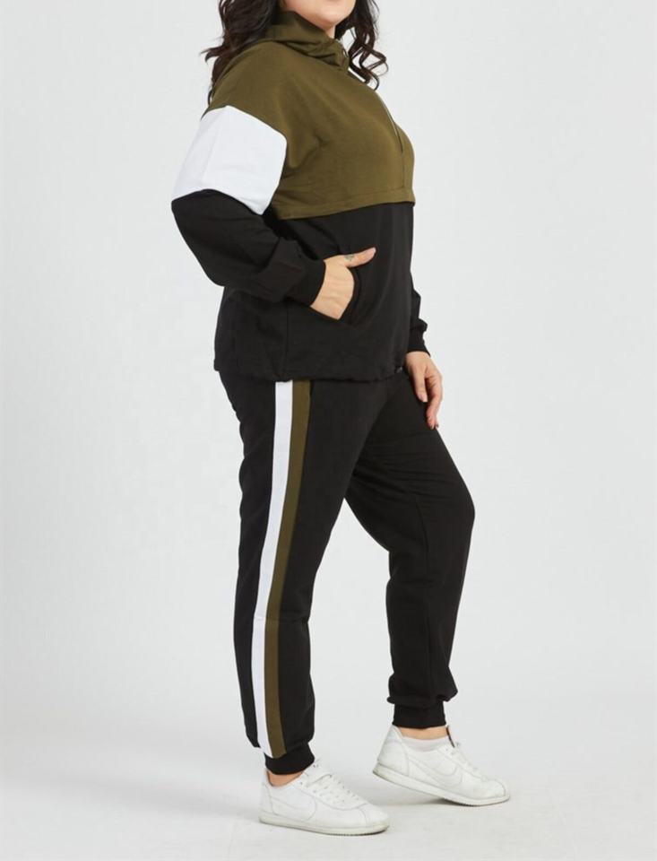 Conjunto de chándal ecológico con diseño personalizado multicolor de talla grande para mujer con capucha y cremallera
