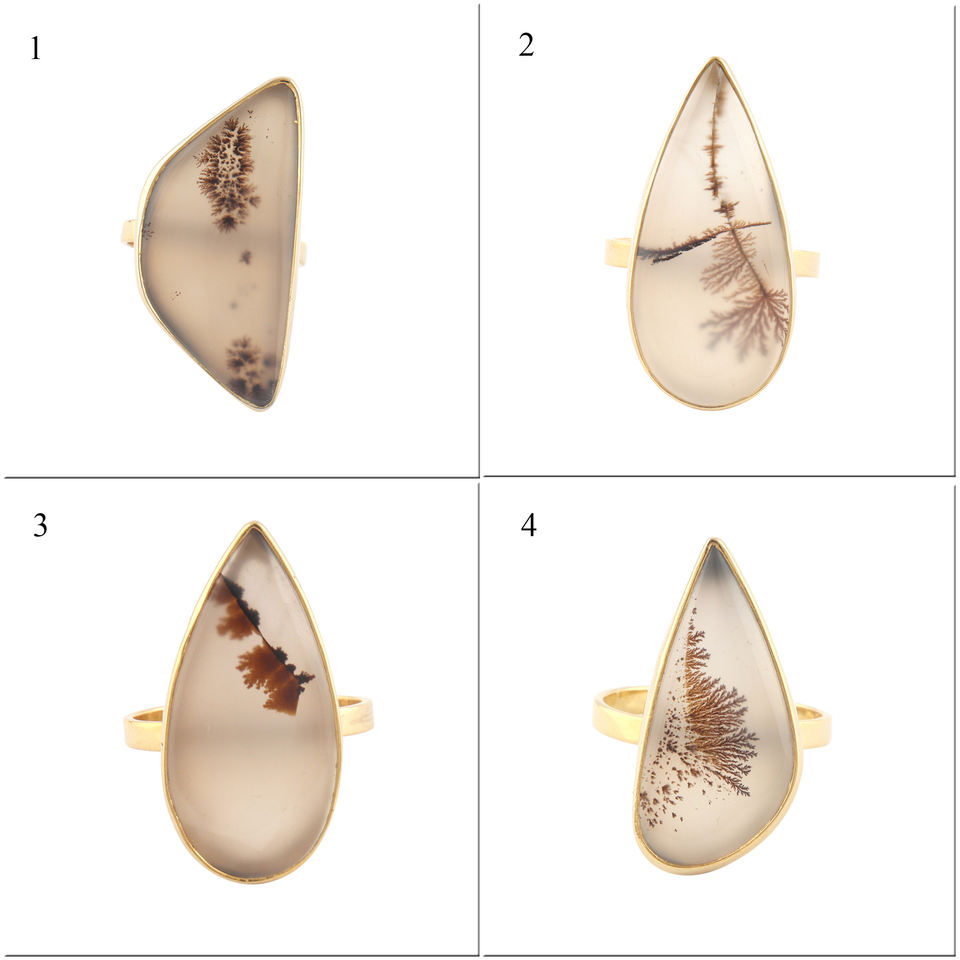 Anillo de cabujón de ágata dendrítica Natural de diseño personalizado 18K Latón chapado en oro abierto Ajustable para boda fiesta desgaste joyería regalo