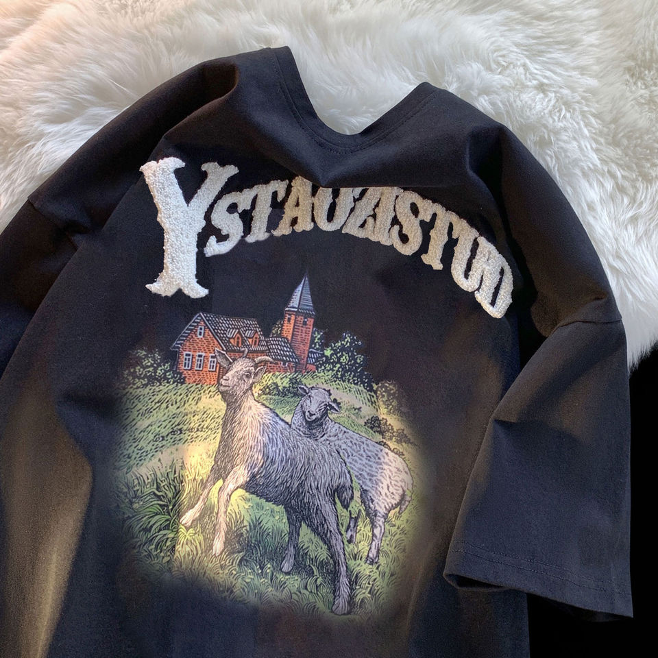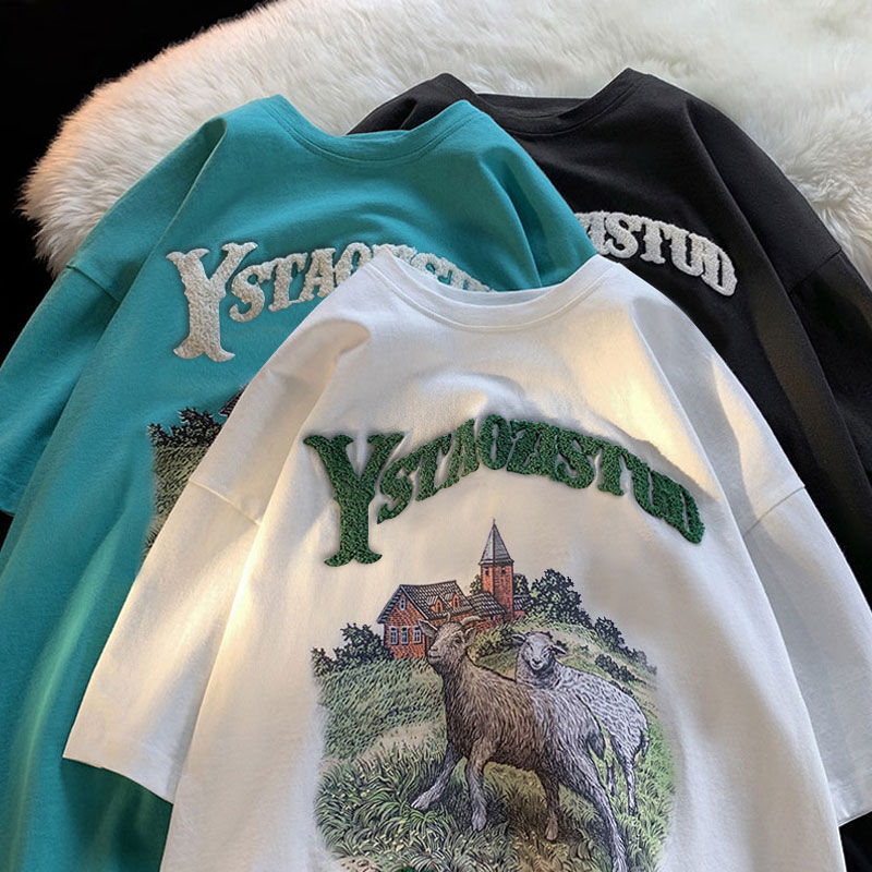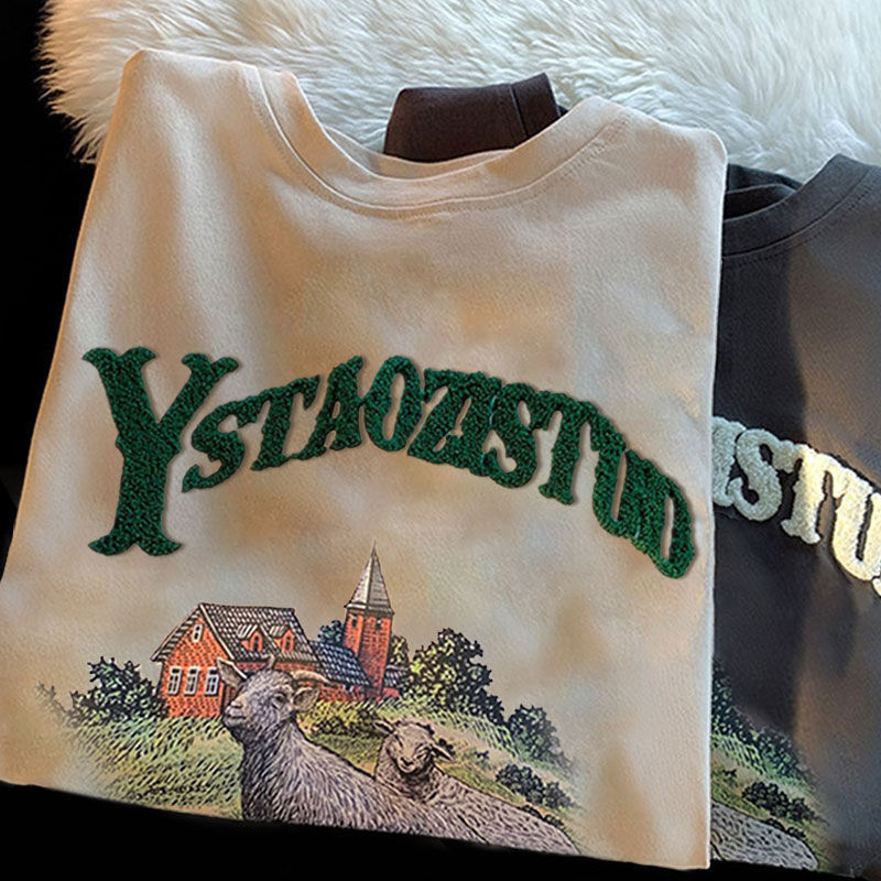 Camisetas con Cuello Redondo de Diseño Personalizado 2026, MOQ Bajo, Logotipo Chenille, Estilo Hip Hop, Unisex, Algodón Regular, Talla Grande