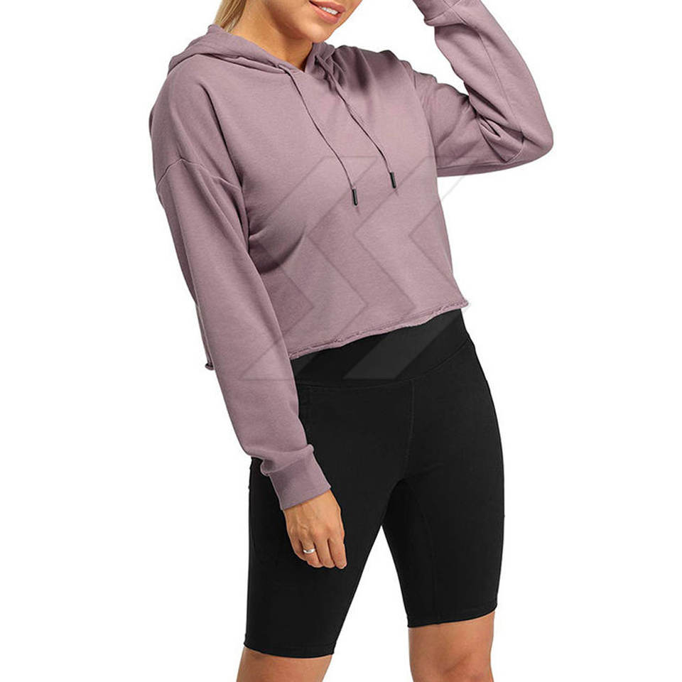 Diseño personalizado de uso al aire libre Fleece Mujeres Crop Top Hoodies Color sólido Cómodo transpirable Crop Top Hoodies