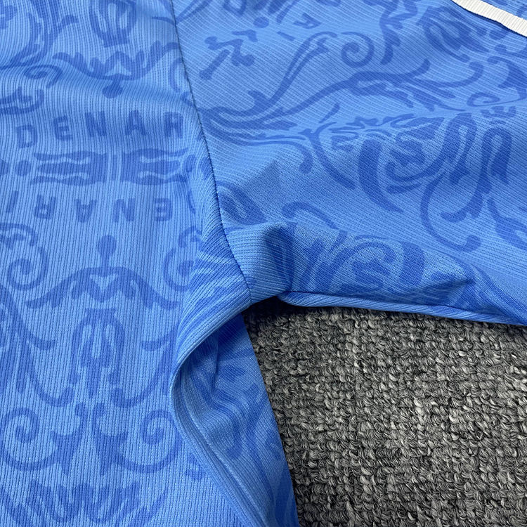 Diseño personalizado impresión azul cuello diferente sublimación burelage camiseta de fútbol