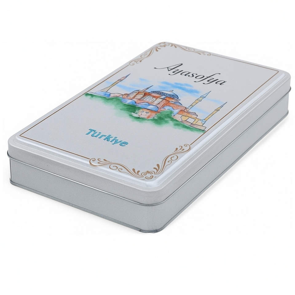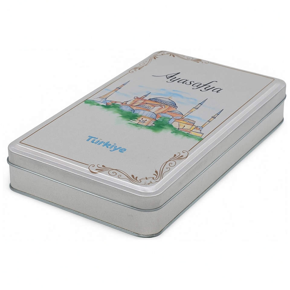Caja de Regalo Rectangular Plateada Mate de 200x300x46 mm, Diseño Personalizado Impreso, Caja de Hojalata de Grado Alimenticio