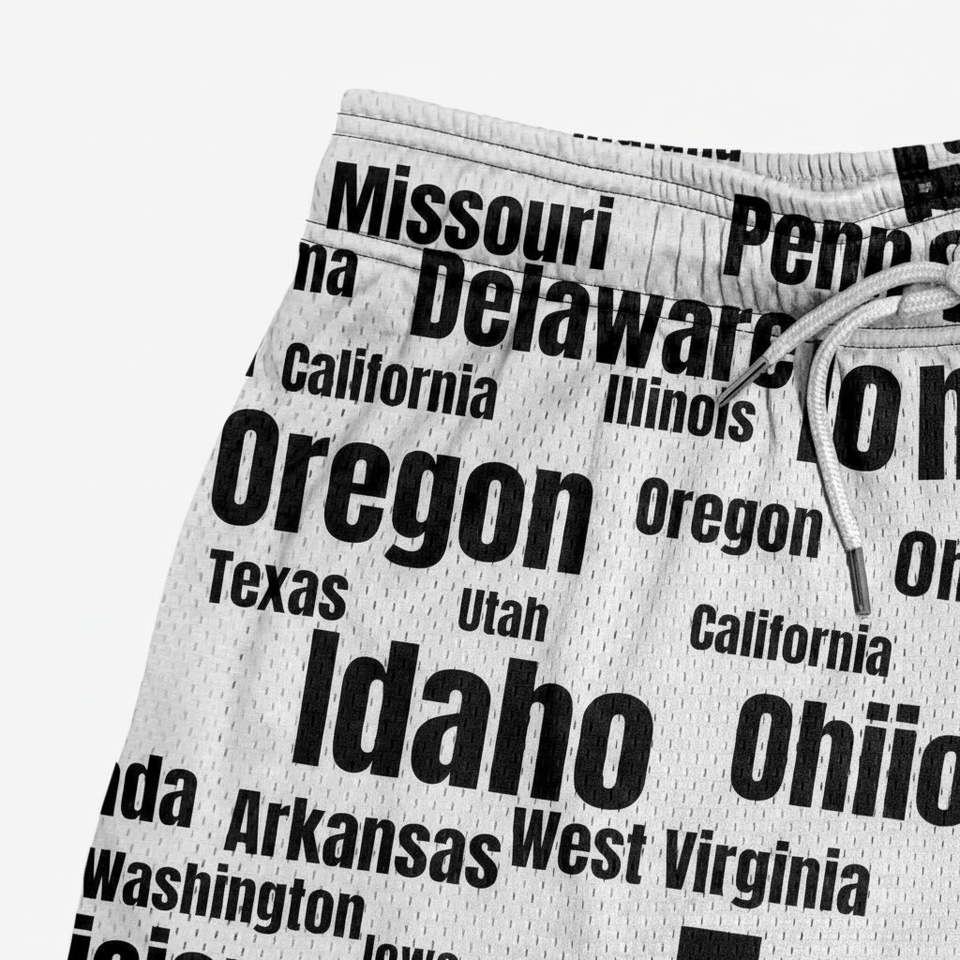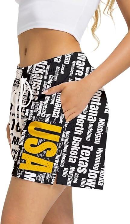 Pantalones cortos deportivos con estampado de diseño personalizado, pantalones cortos de entrenamiento y gimnasio elásticos de 4 vías que absorben la humedad