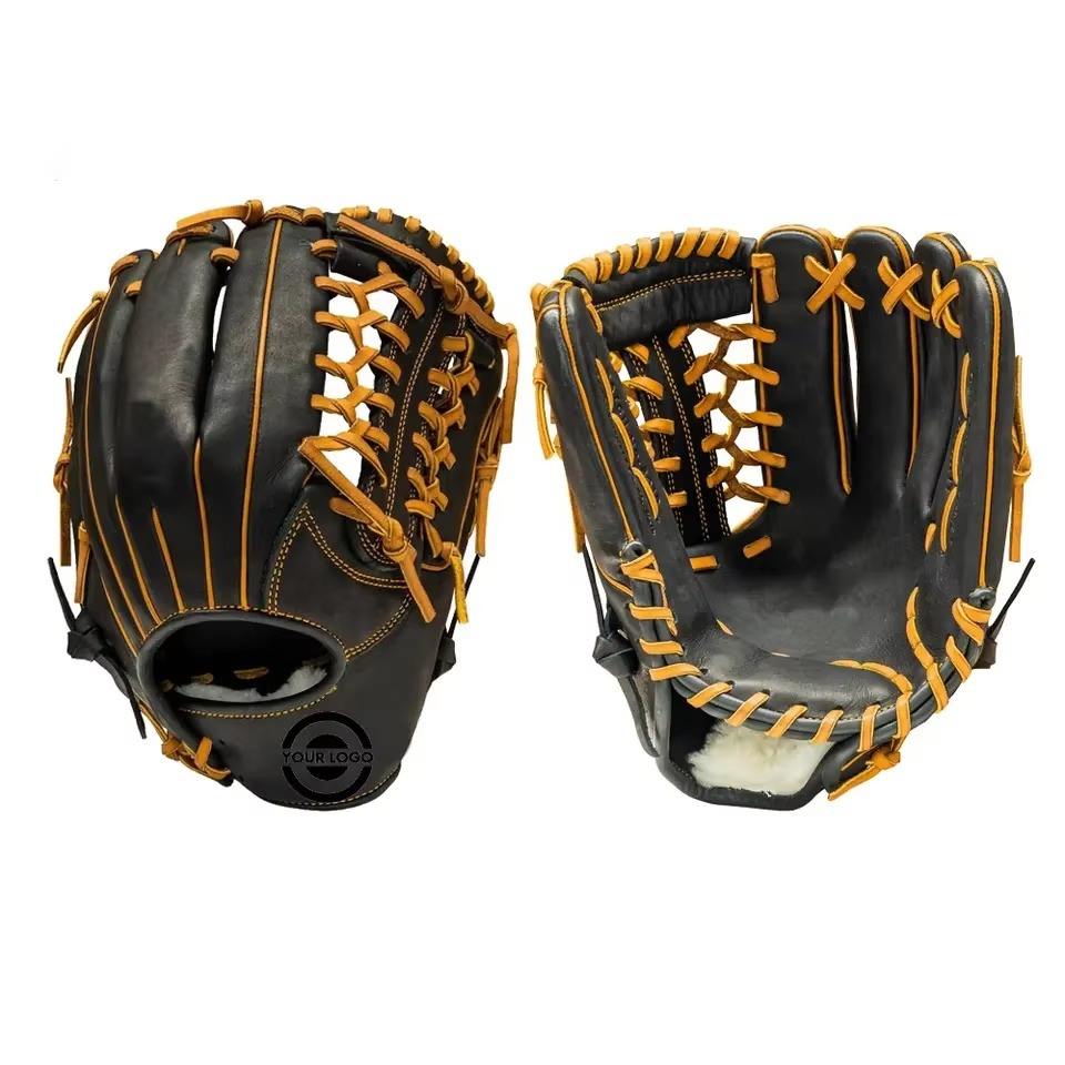 Guantes de Béisbol Profesionales de Diseño Personalizado, de Cuero Vacuno, para Mano Derecha, con Tejido en H, para Uso en Exteriores, Todas las Estaciones, para Adultos