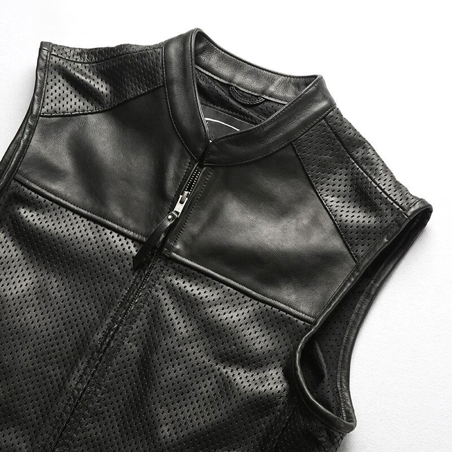 Chaleco de cuero sin mangas de invierno para hombre de tela cómoda profesional de diseño personalizado a prueba de viento de talla grande ropa de moto al aire libre