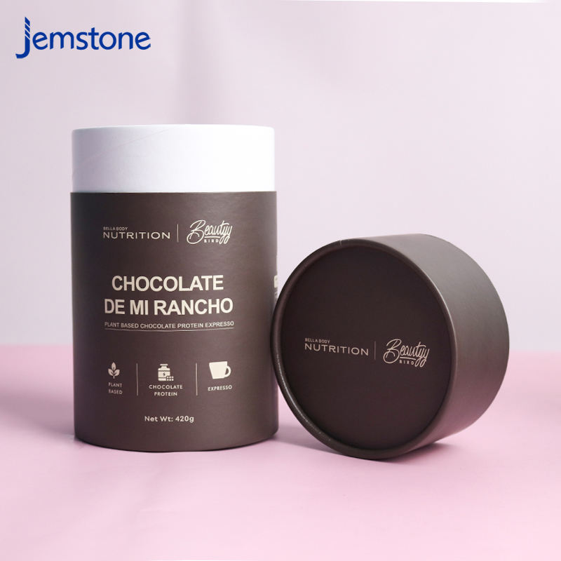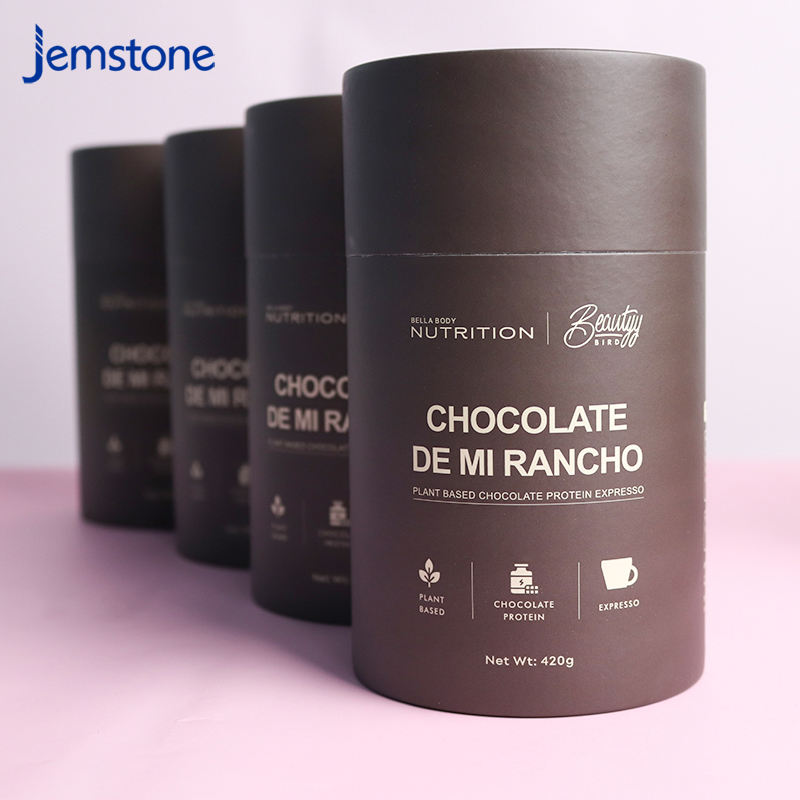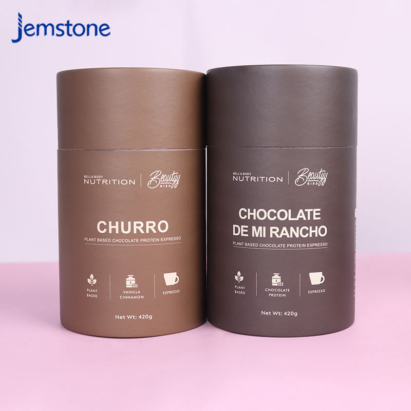 Caja de Embalaje Cilíndrica de Cartón Kraft Reciclable de Grado Alimenticio, Diseño Personalizado, Envase de Tubo de Papel para Chocolate y Proteína en Polvo