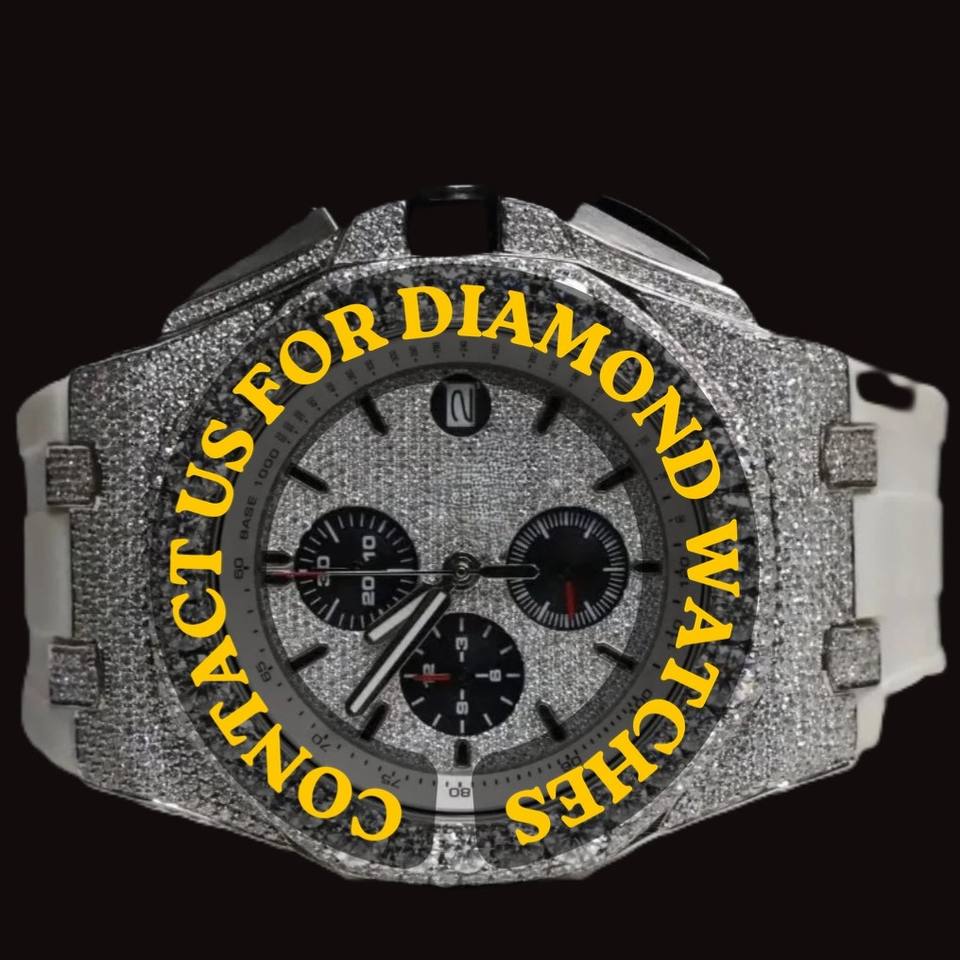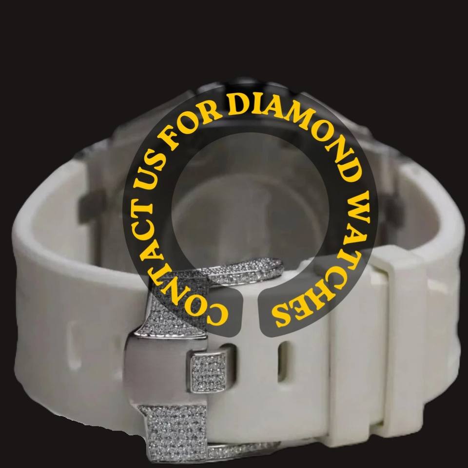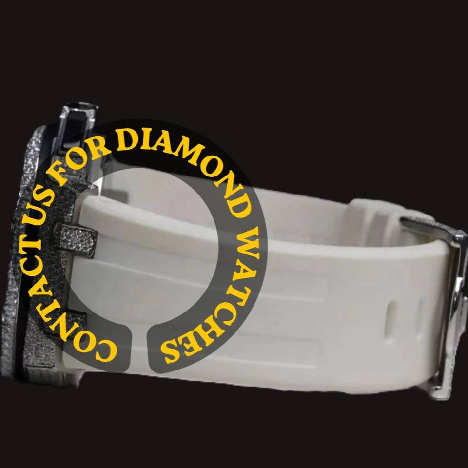 Reloj de Fiesta con Diseño Personalizado, Diamantes de Moissanita Brillantes, Movimiento de Cuarzo, Correa de Goma Blanca, Esfera Redonda con Cronógrafo