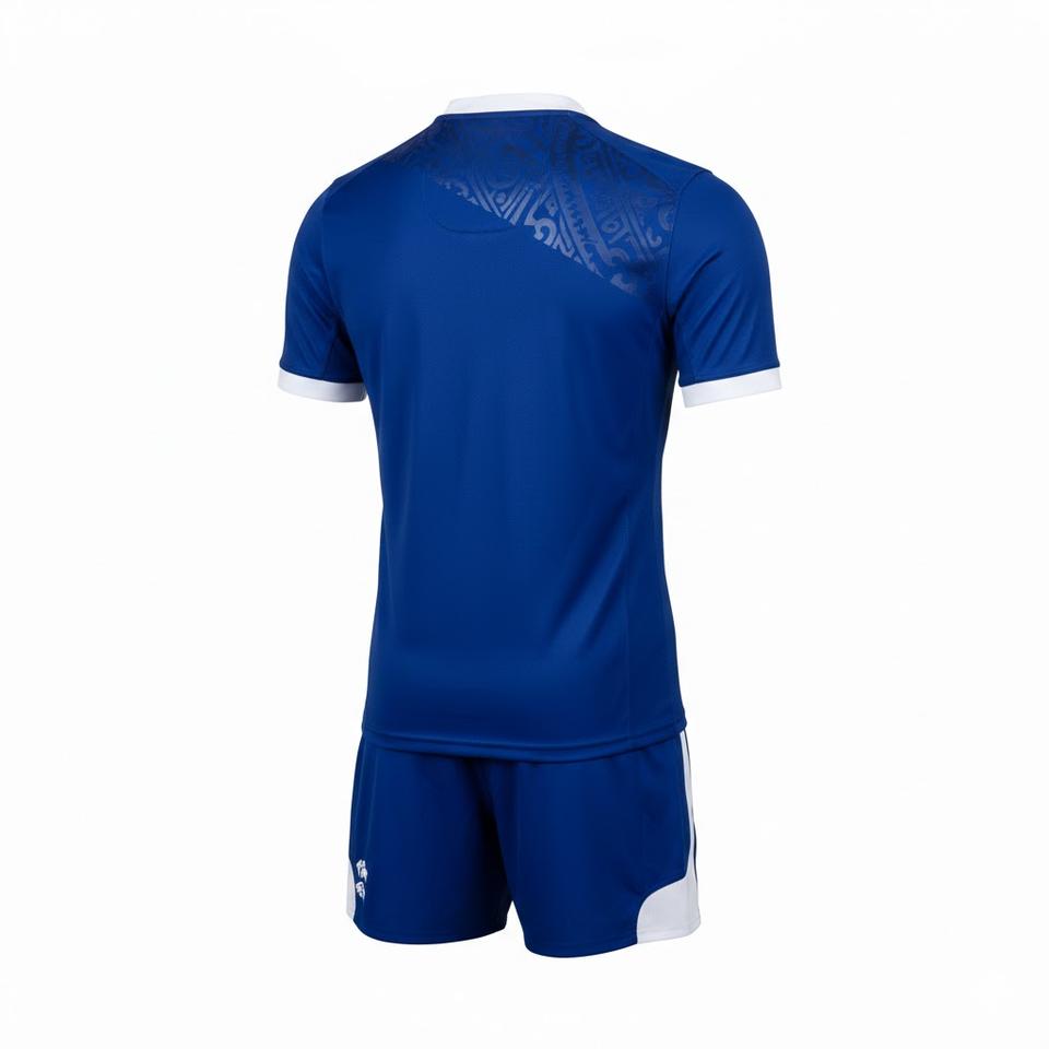 Conjunto de Uniforme de Fútbol Personalizado con Cinta Azul, Equipación Deportiva para Equipo, 100% Poliéster, Antibacteriano, de Secado Rápido, Cuello en V