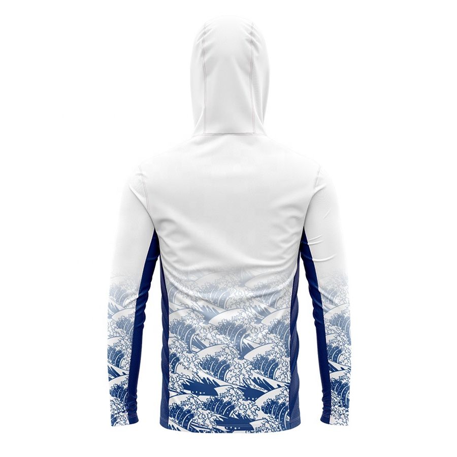 Sudadera con capucha de pesca con estampado de sublimación de diseño personalizado UPF50 camiseta de pesca con capucha