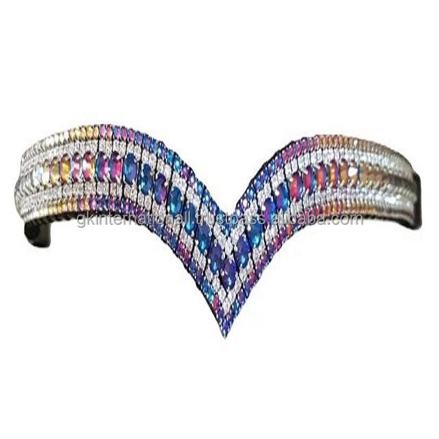 Correa de cuero negro con forma de V para cejas de caballo, diseño personalizado, hecho a mano, 5 filas, diseño multicolor, cristales ostentosos, pedido a granel