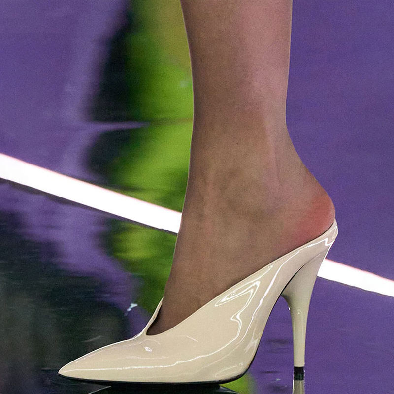 Sandalias de tacón de aguja con punta para mujer, diseño personalizado, sexys, de charol, tipo mule