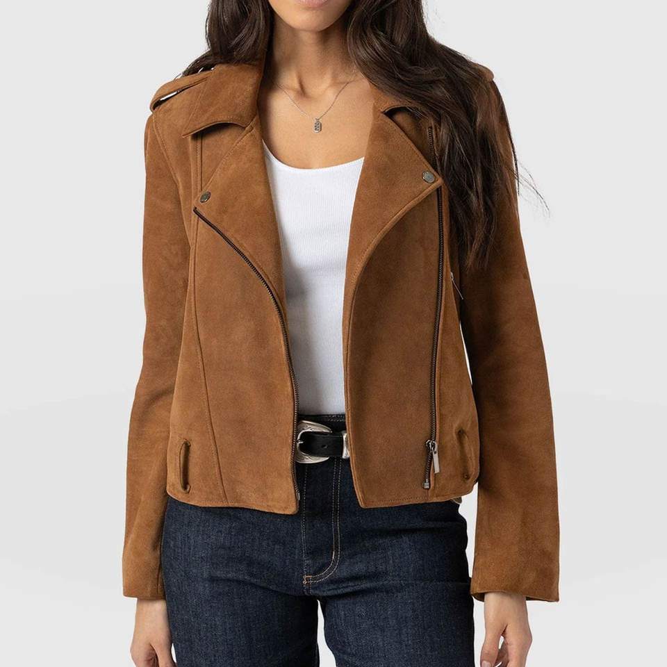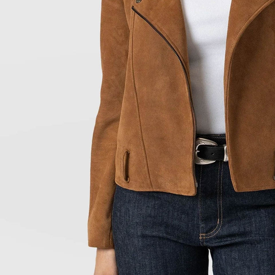Chaqueta de ante de mujer de diseño personalizado con cremallera chaqueta de ante de moda de manga larga de color sólido de cuero genuino