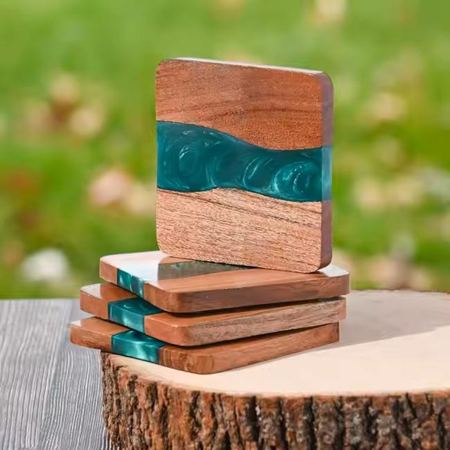 Juego de Posavasos de Resina y Madera con Diseño Personalizado, Posavasos de Resina Epoxi, Tapetes y Almohadillas para Comedor, a Precio de Fábrica al por Mayor